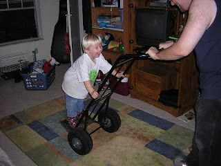 Dalton and I left the house around 5, and he was passed out on the couch at the apartment watching Cars by 6. Poor guy just wore himself out. He took a pretty nasty tumble outside the house (Mom heard his knee crack as it hit the ground), but a walk up to UDF for ice cream with his Nana cured that. :) He was a big helper again today--just look at the lovely decoration he put up on our front door (with the help of Nana):
